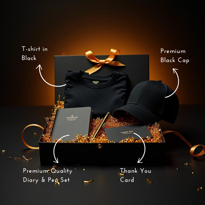 - Luxury Diary & Pen Set: A premium black notebook with gold detailing, paired with a stylish gold pen.